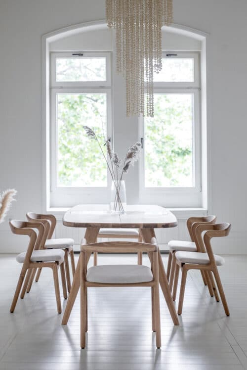Masterful artisans bring out the rich, distinctive grain patterns, resulting in a captivating display of rustic charm that makes it a true centerpiece in any dining area. With a solid construction designed for longevity, this dining table ensures durability, making it a reliable investment for years of cherished gatherings and memorable meals with loved ones. Its blend of modern and rustic elements adds character to your home, while the solid oak construction ensures stability and endurance. Its generous size allows for comfortable seating and ample space for serving dishes, making it perfect for hosting intimate dinner parties or lively family gatherings. Create cherished memories and engaging conversations around this beautiful and functional table.