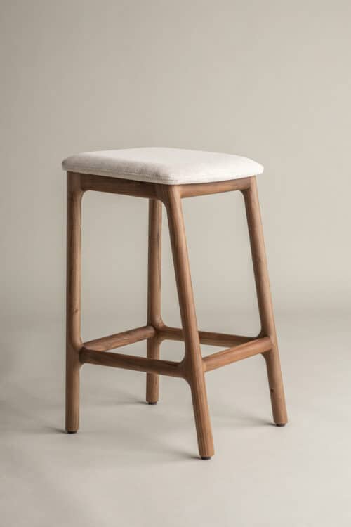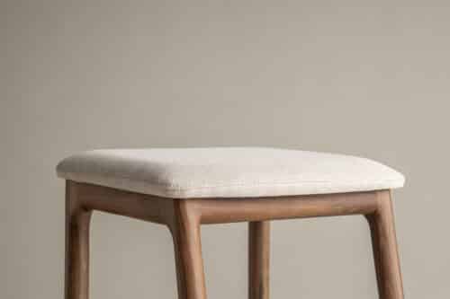 In addition to its versatility, the Rocco Bar Chair, designed by Charlie Pommier, is also well-suited for use at kitchen counters.