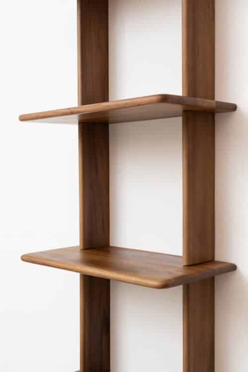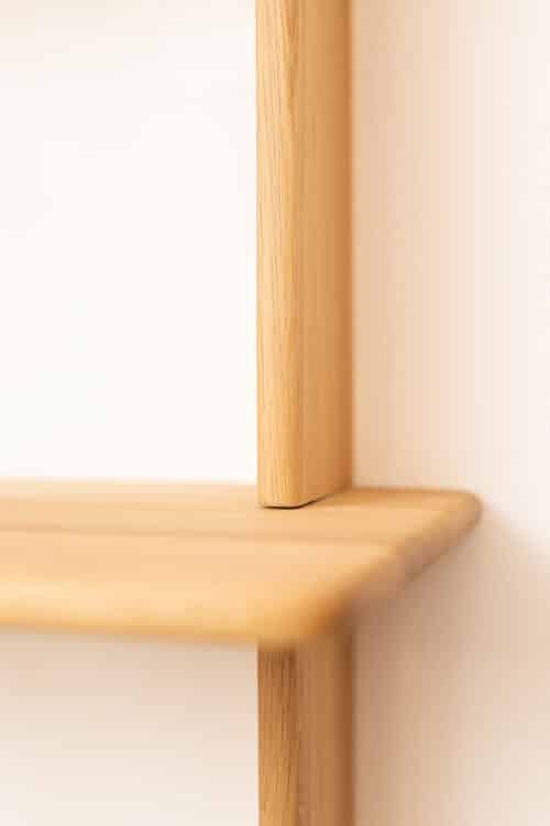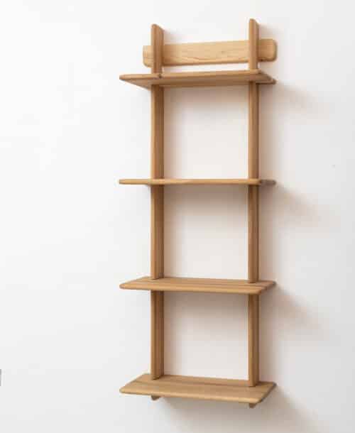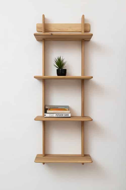Shelf dimensions: width 53cm, depth 25cm, and height 133cm. Production time is 45-60 working days. A solid wood shelf is perfect for every house or home because of its simple and elegant line inspired by warm Nordic and Scandinavian design but with a French touch of elegance. An innovative self-installation system without glue or screws. The shelf is entirely made of solid wood that is treated with a natural water-based matt varnish. Every segment is handcrafted choosing the perfect wooden parts that have a similar texture.